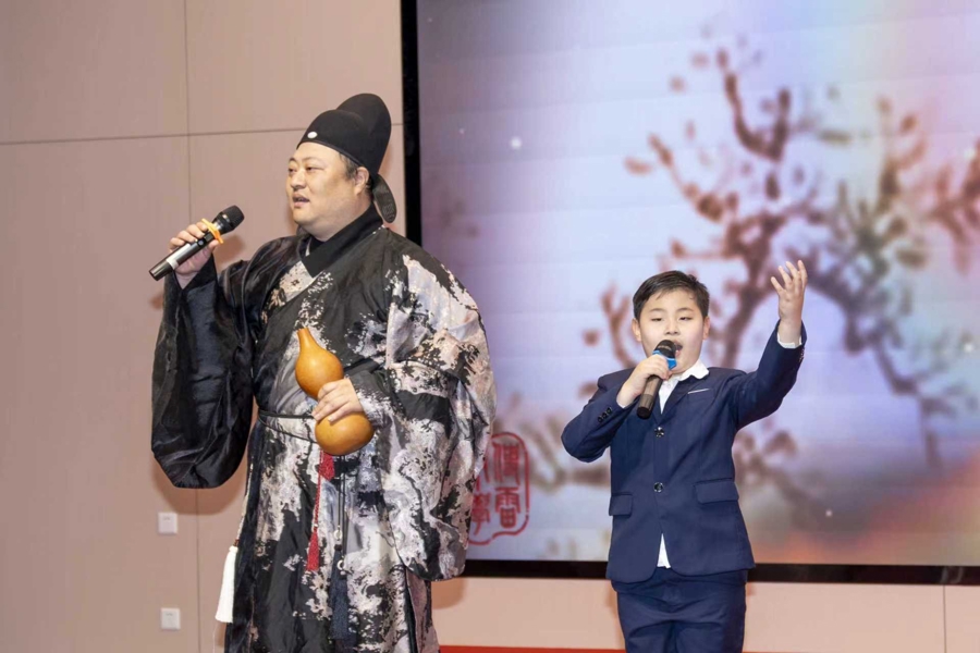 诗会在傅雷小学亲子语艺社孩子们带来的《童韵贺春》中拉开帷幕,稚嫩的童声为春天献上第一声祝福。