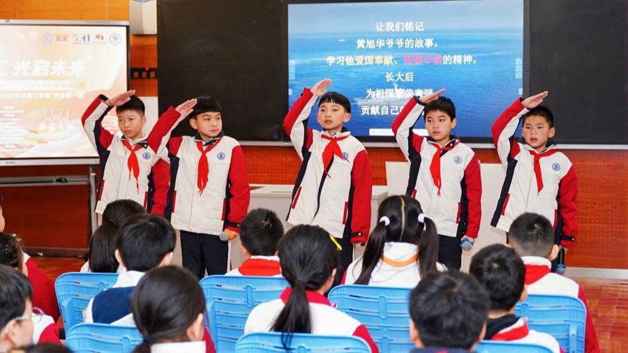今天是新学期首日。上午8时许,在上海交通大学附属小学的“开学第一课”现场,2026年徐汇区“家门口的博物馆·红色文化进校园”正式启动。徐汇“建筑可阅读”志愿者联盟讲解员、交大附小学生代表、上海交大人工智能学院大学生先后走上讲台,在《智汇古今 光启未来》主题宣讲等分享中,通过多方协同、资源联动,推动徐汇丰富的博物馆优质文化资源与校园教育深度融合,引导青少年回望徐汇区深厚的科技文脉,坚定勇攀高峰、报效祖国的理想追求,绘出属于自己的新时代成长蓝图。