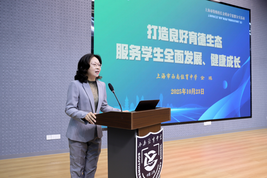 这是上海市特级校长、特级教师、上海市西南位育中学党委书记金琪昨天在徐汇区“双特”联谊会“特级校长开讲啦”活动上分享的故事(下图)。